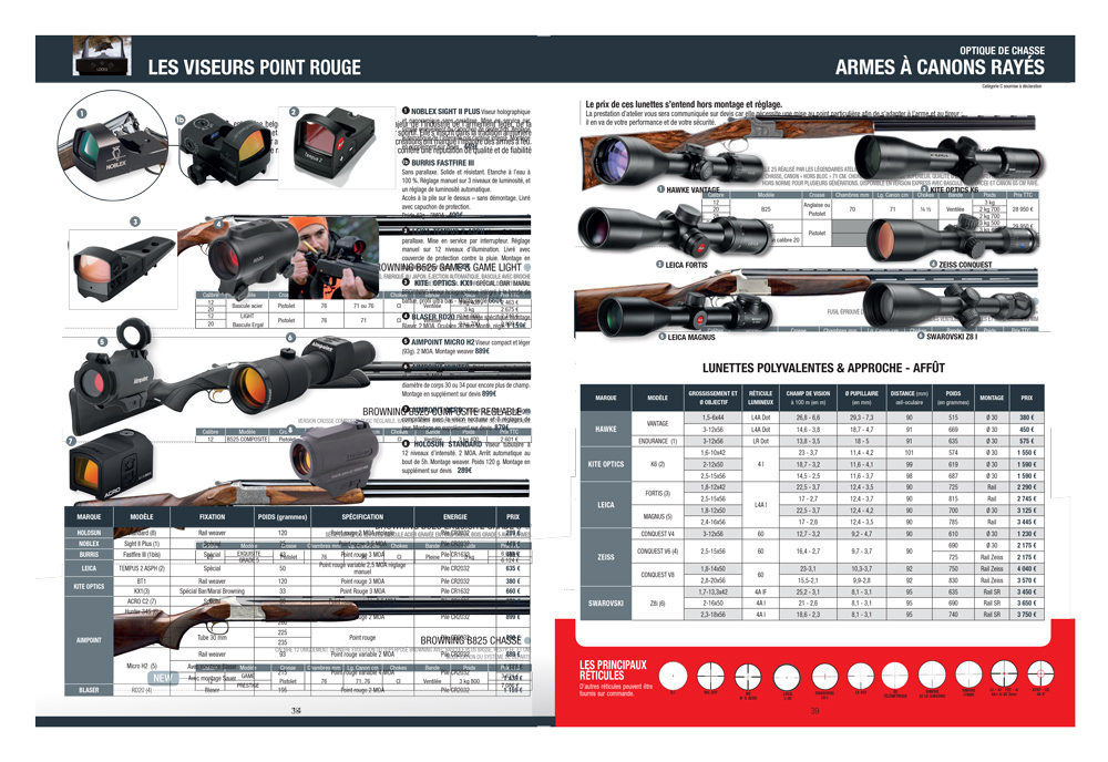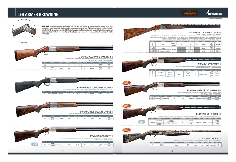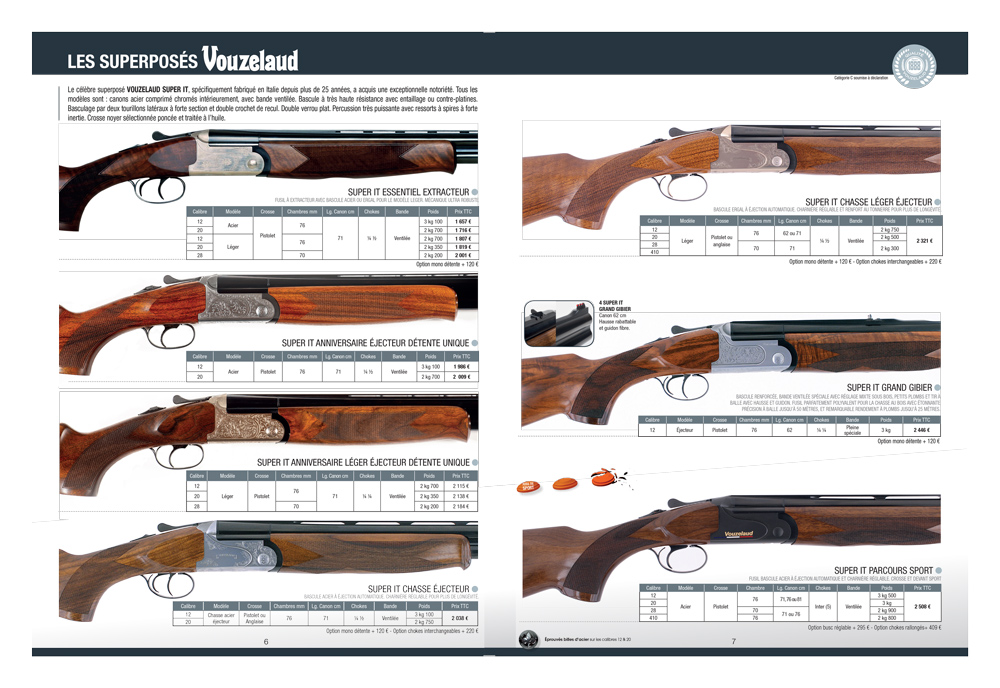 Nature du travail : Refonte de charte graphique et mise en page du catalogue annuel des armureries Vouzelaud. Logiciels utilisés : Indesign, Photoshop, Illustrator